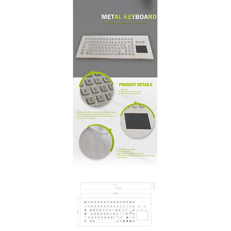 - IP65 front panel and IP68 trackball sealing